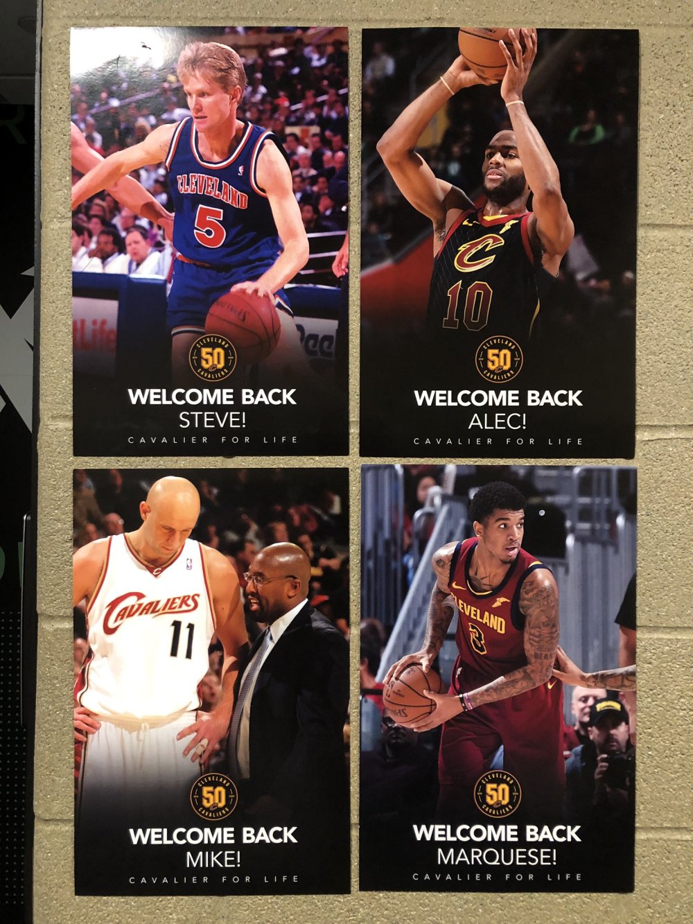 今天骑士官方在勇士更衣室门口张贴了一张海报,欢迎勇士的前骑士球员和教练回归。这组海报上分别有科尔,伯克斯,克里斯,迈克-布朗。海报上配文:“欢迎归来,骑士一生!”又是一次骑勇大战,不过一切物是人非啊。