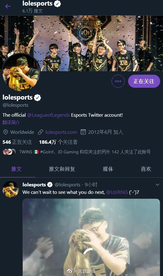 LOL官推将头像、封面换成Uzi
